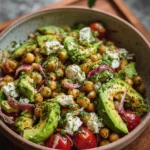 A refreshing salad made with chickpeas, creamy avocado, and salty feta cheese, packed with nutrition and bold flavors.